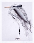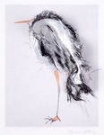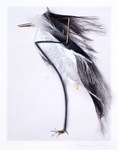 This is a series of Japanese herons created with transparent and compact textile staples highlighted with rubber sticks and brass. Through combining these extraordinary materials the birds are characterized beautifully. A wonderful series of portayals of the heron is presented. The collages are poetic, subtle, and austere in colouring.